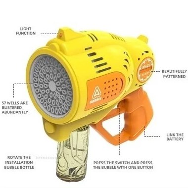 * ارائه تفنگ اسباب بازی حباب ساز شارژی با 57 خروجی و نورپردازی با تضمین کیفیت و عملکرد.